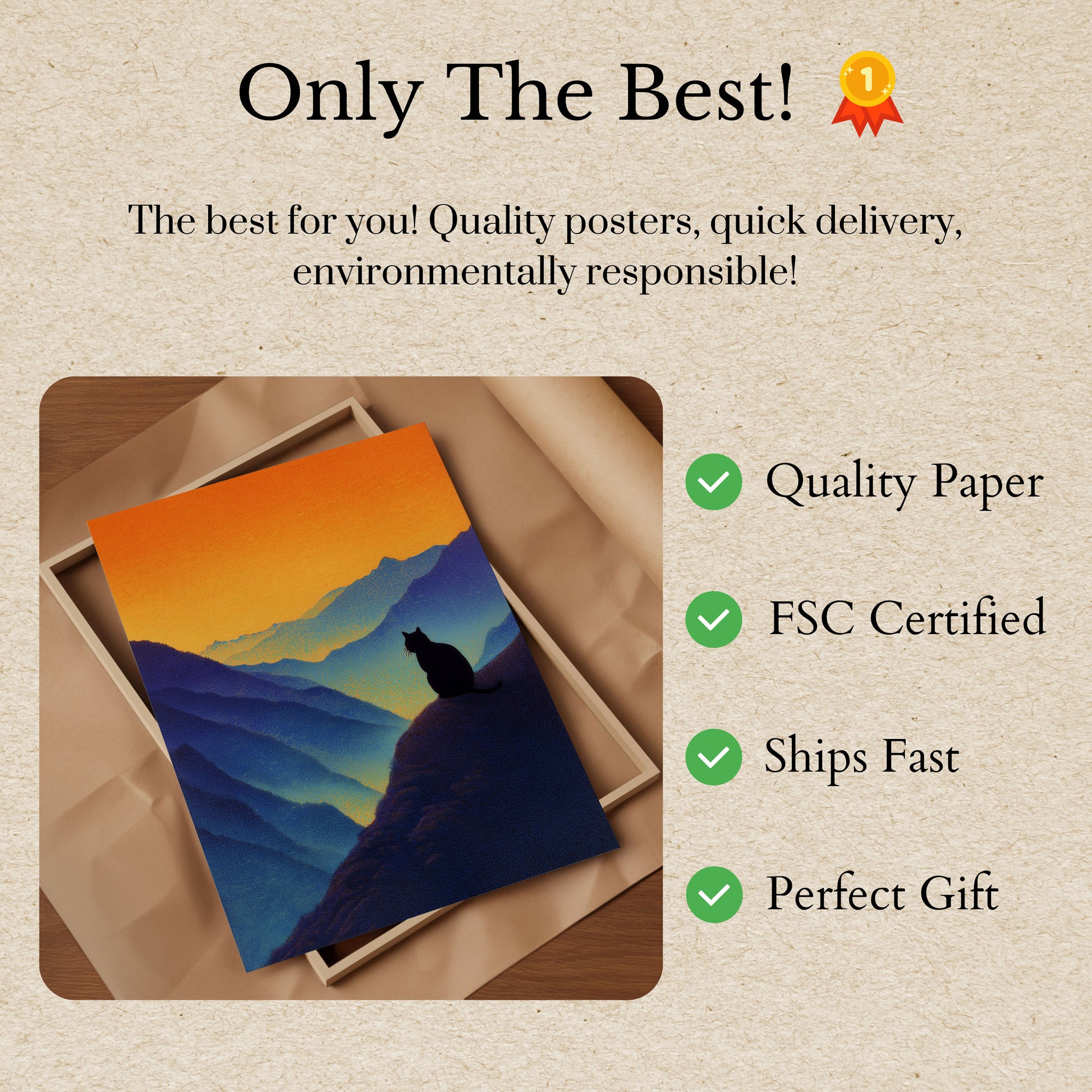 Todos os nossos Pôsteres são feitos com papel premium espesso de 170 g/m² certificado FSC para garantia ecológica.