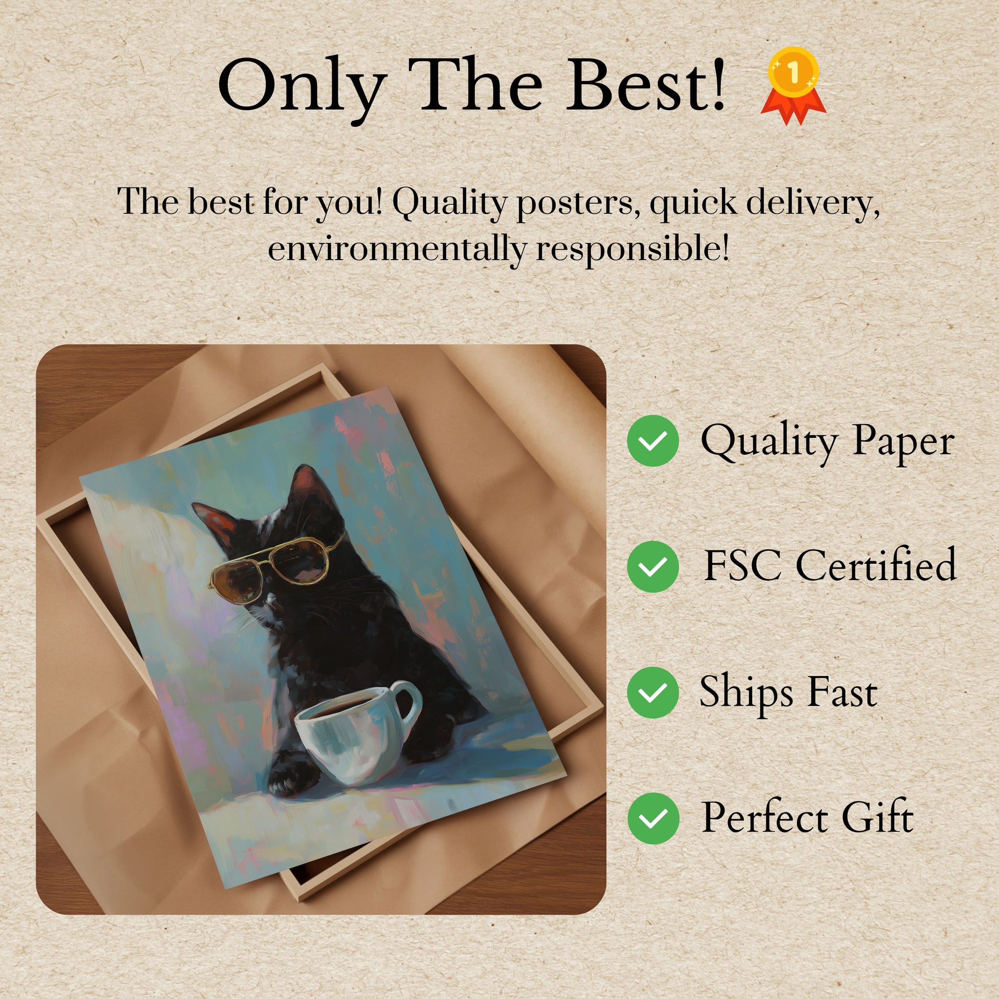 Todos os nossos pôsteres são feitos com papel premium de 170 g/m² certificado FSC, garantindo sustentabilidade ambiental.