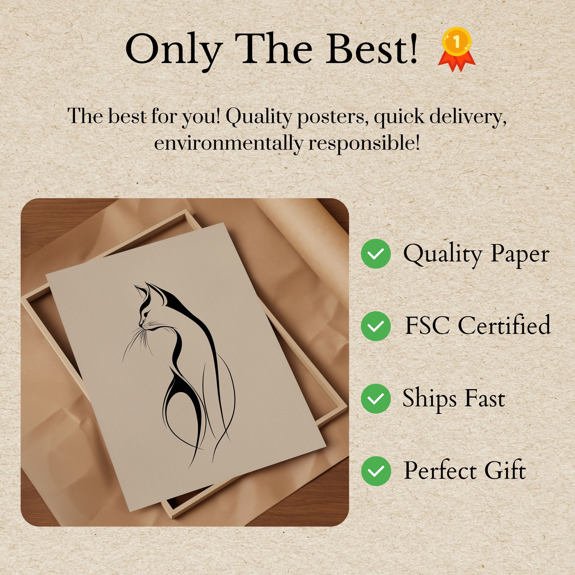Este impressionante pôster minimalista de gato captura a essência graciosa da elegância felina em linhas ousadas e fluidas. A composição artística apresenta um gato sentado em perfil, renderizado com um contraste preto e branco marcante que cria uma estética sofisticada e moderna. Os bigodes delicados e olhos expressivos adicionam calor a esta peça contemporânea, enquanto o trabalho de linha limpo e a abordagem minimalista a tornam perfeita para qualquer ambiente que busque um toque de encanto artístico e beleza felina.