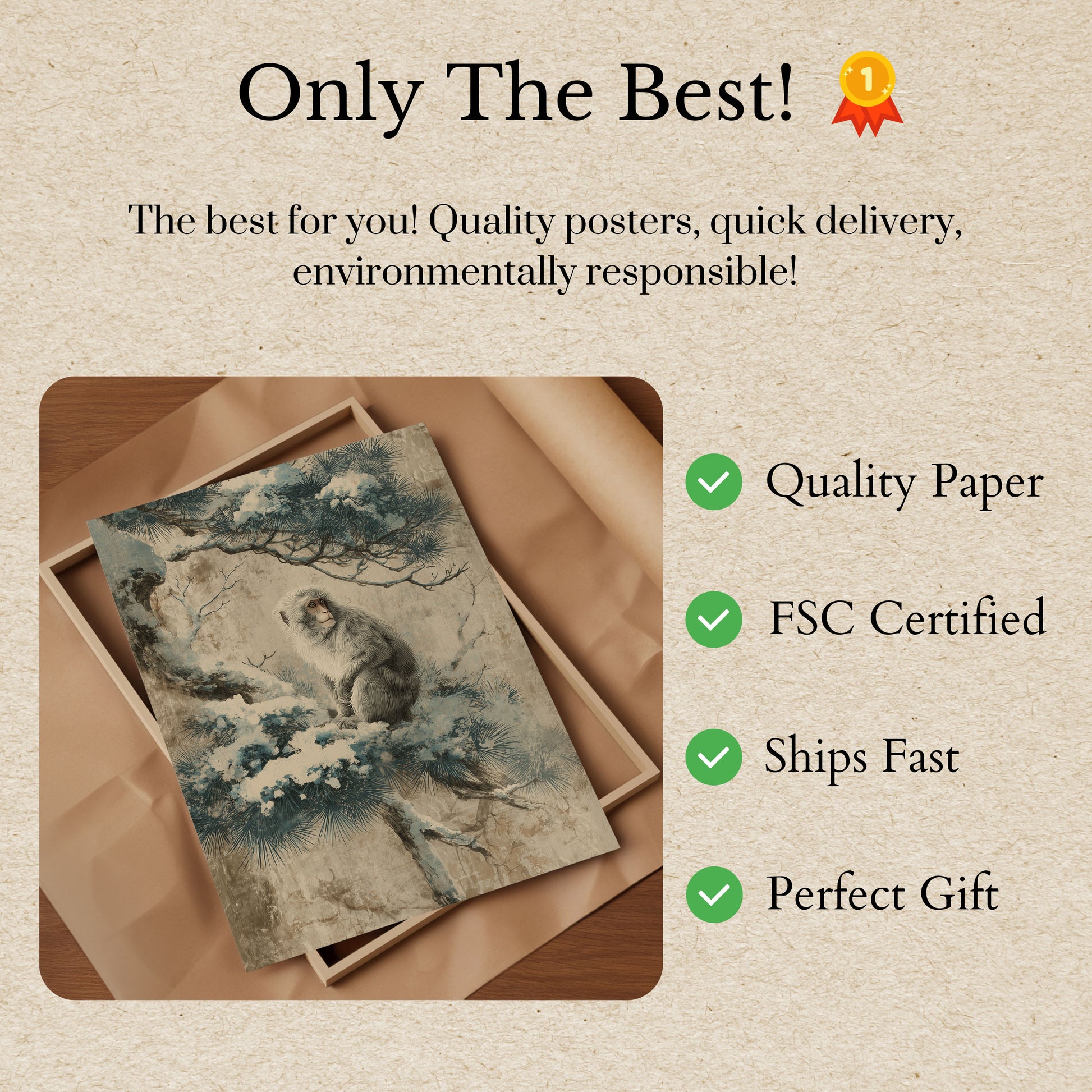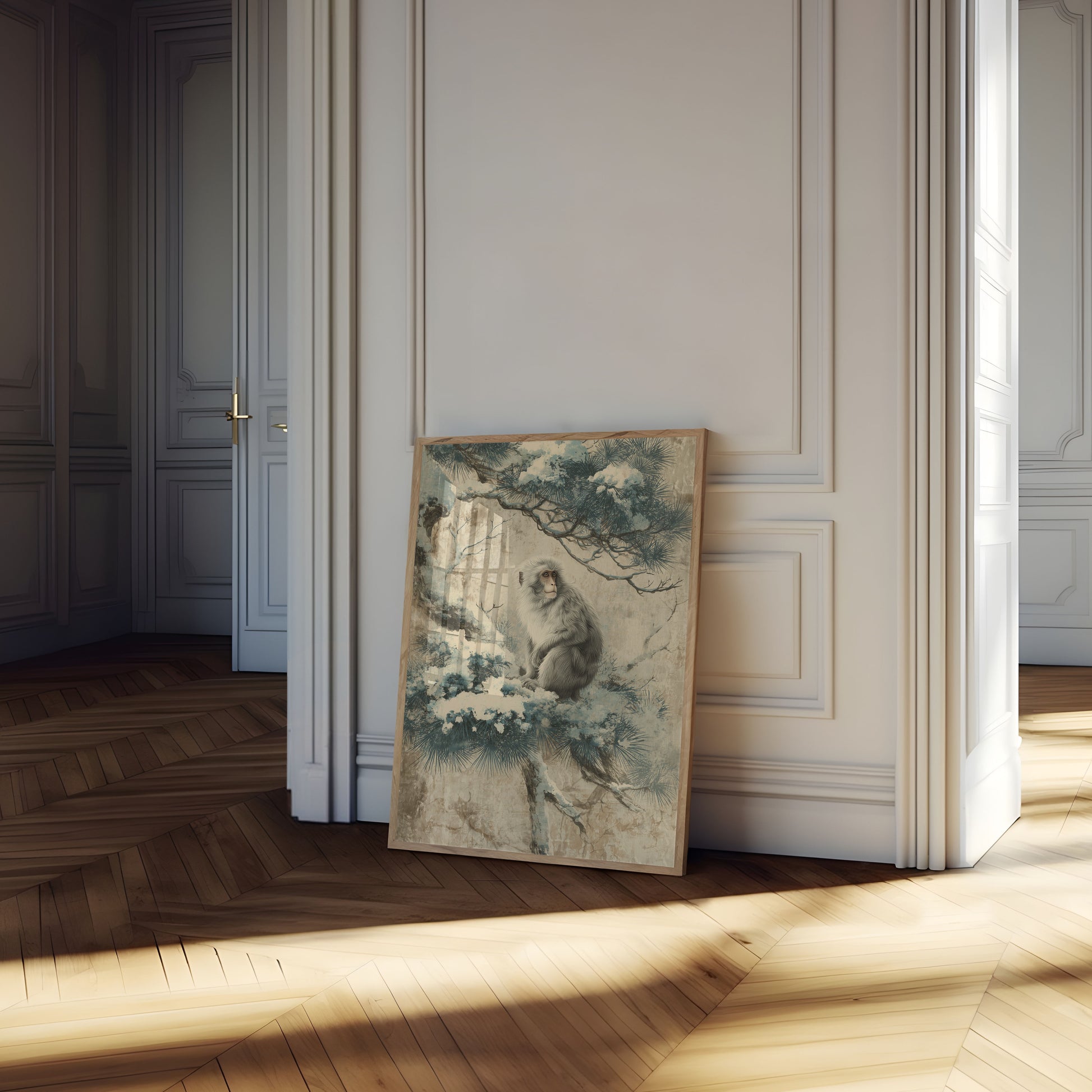 Esta obra serena e contemplativa captura um macaco majestoso empoleirado entre galhos de pinheiro carregados de neve em uma paisagem invernal tranquila. A delicada interação de brancos suaves, cinzas frios e azul-esverdeados silenciosos cria uma atmosfera pacífica e meditativa que parece ao mesmo tempo atemporal e poética. O trabalho de linha detalhado e a técnica inspirada em aquarela trazem o macaco na neve à vida, mesclando detalhes naturalistas com uma sensibilidade artística que transforma um momento simples em algo verdadeiramente cativante e emocionalmente ressonante.