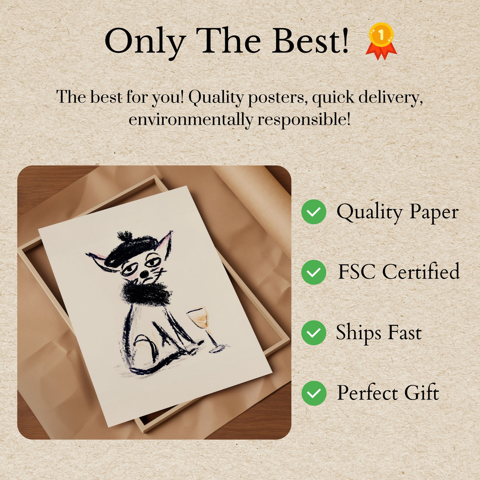 Todos os nossos Pôsteres são feitos com papel premium espesso de 170 g/m² certificado FSC para garantia ecológica.