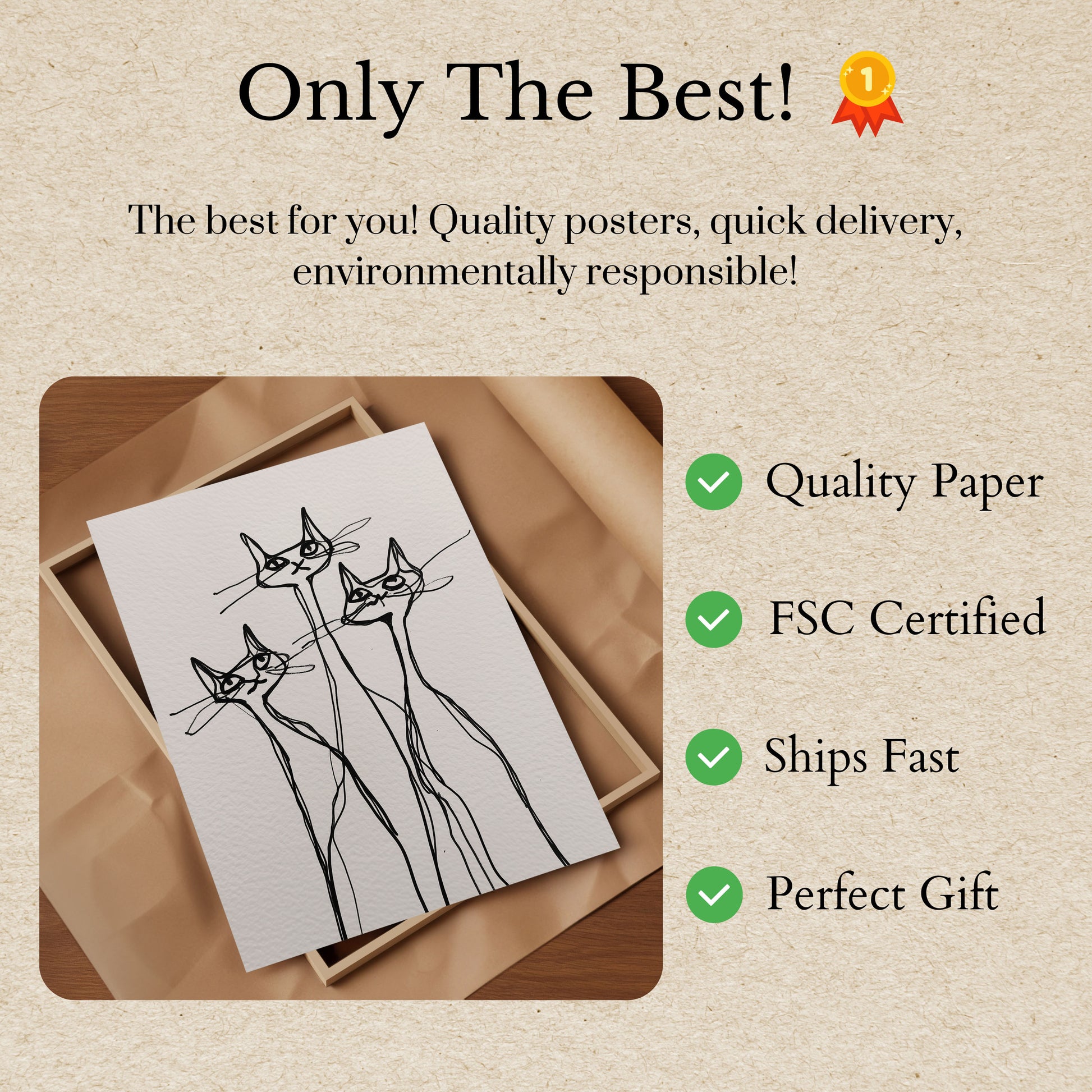 Pôster com Desenho de Três Gatos Elegantes em Linha