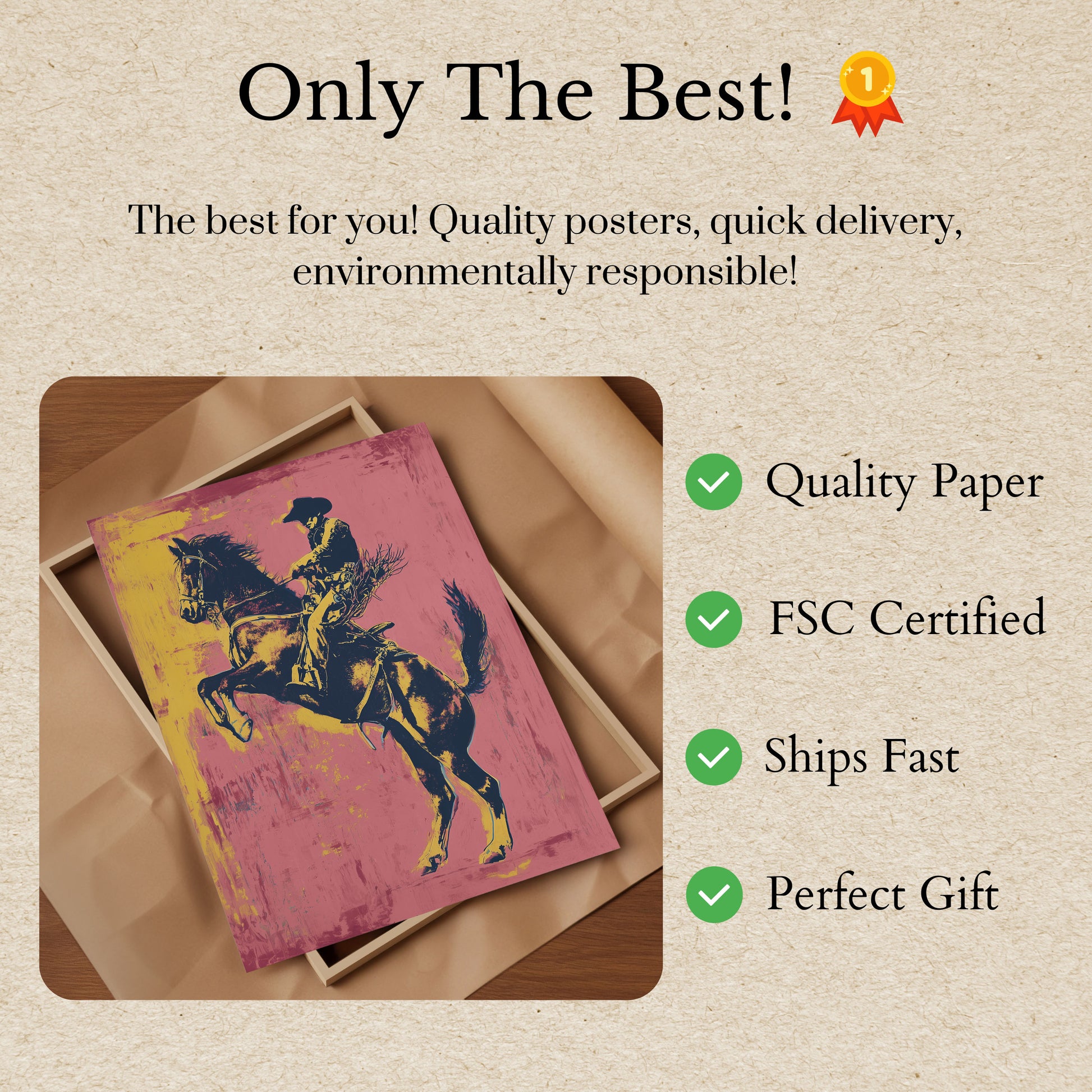 Alla våra posters är gjorda med tjockt, premiumutskrivet 170 g/m²-papper som är FSC-certifierat för miljövänlig trygghet.